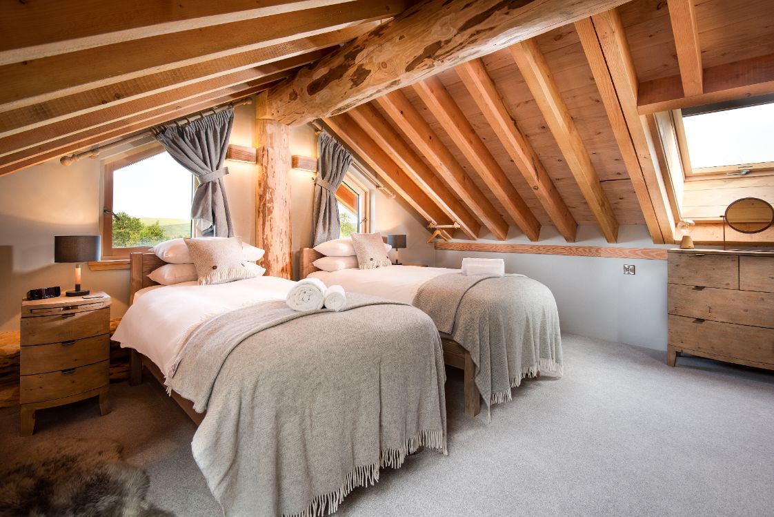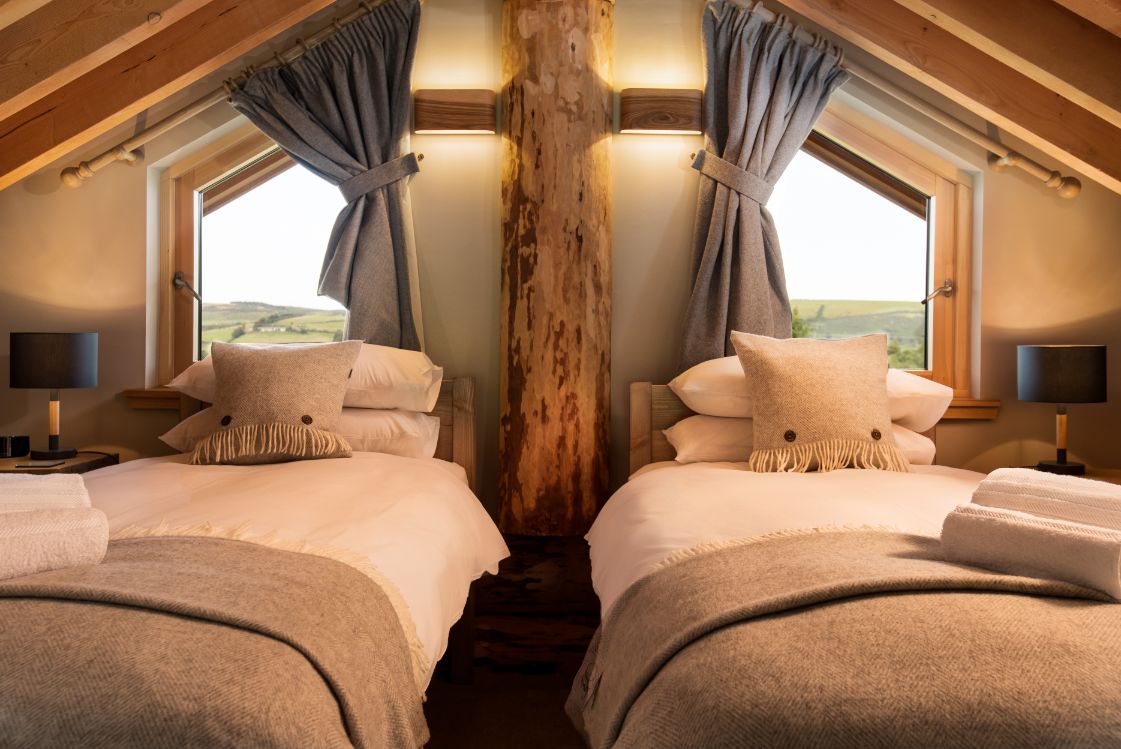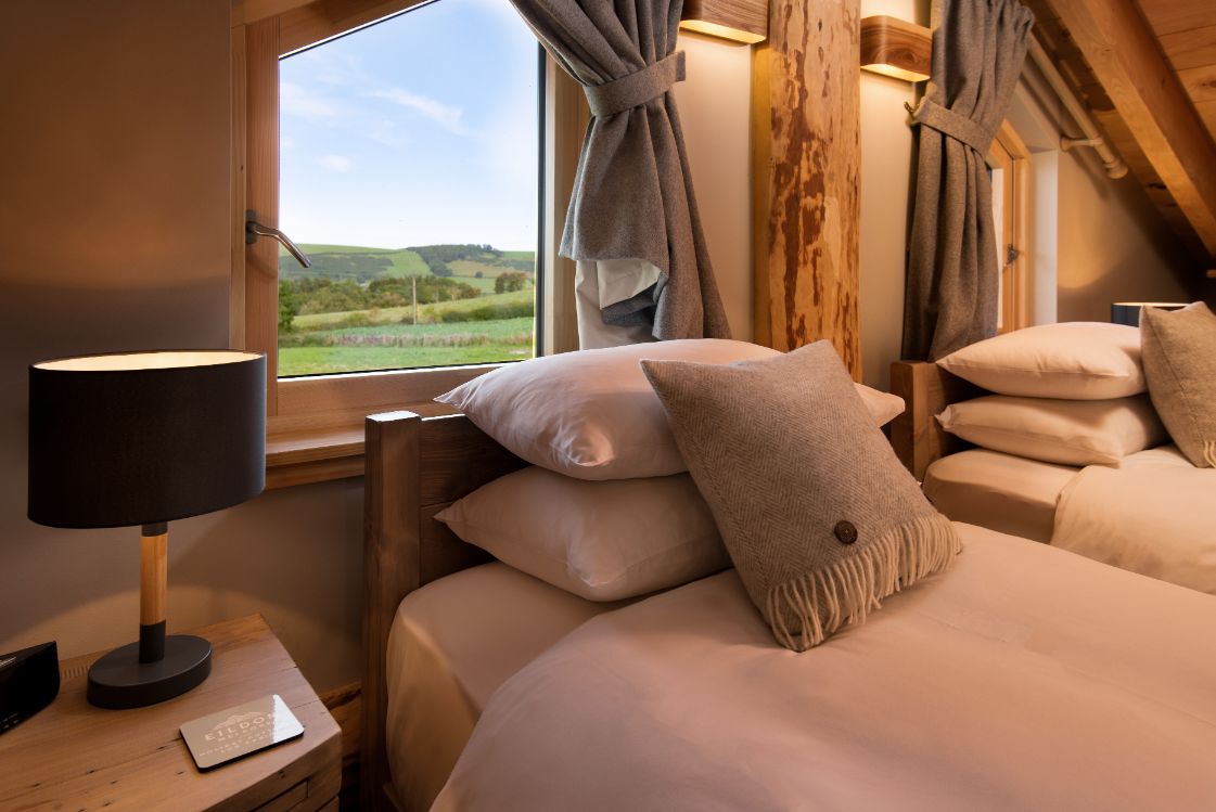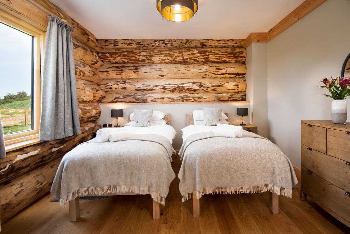 Inside the cabin you will enjoy luxuriously appointed interiors including two bedrooms – both can be made up with two single beds or zipped together to make huge superking doubles. Perfect for groups of friends, families or as a romantic escape for two (15% discount for 2 person occupancy – sharing 1 bedroom).