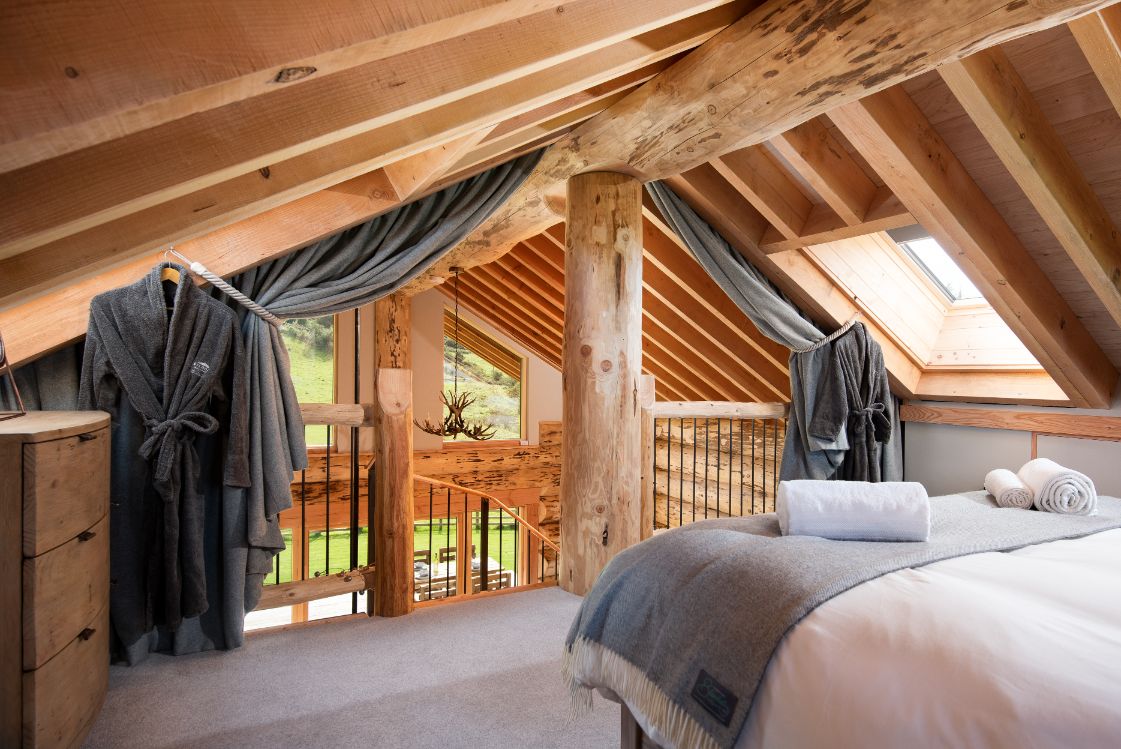 One bedroom is on the ground floor with private access to the sumptuous shower room. The second bedroom is on a mezzanine floor above the living area where spectacular views of the Eildon Hills are never far away thanks to the high level windows in the beautiful vaulted ceiling.