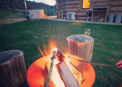 From the moment you walk out to the large decking area, sit around the fire-pit or sink into in the wood fired hot tub, glass of fizz in hand and fabulous views at every turn, stresses will melt away and you will know you’re on holiday!